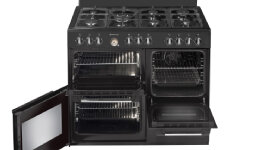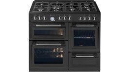 Equipped with an analogue clock and timer, electronic ignition, and flame failure safety devices on every burner, the cooker ensures both ease of use and peace of mind.
