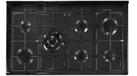 Features a versatile cooktop layout with two rapid, two semi-rapid, two auxiliary, and one powerful WOK burner, delivering precise flame control for every cooking technique.