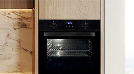 | Features | Installation Type: Wall or Under Benchtop Installation. Oven Finish: Black Glass Finish. Control Panel: Dial with Touch Control Panel. Temperature Range: 50°C - 250°C (+ pizza 310°C) Cleaning: Easy Clean Active Enamel, Removable inner glass door, Detachable door. Lighting: Halogen Lighting. Safety: Triple-layer glass door. Oven Functions: |