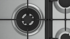 For added safety, this gas cooktop features a flame failure device. This feature stops the supply of gas to the burners if the flame is extinguished.