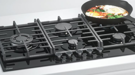For added safety, this gas cooktop features a flame failure device. This feature stops the supply of gas to the burners if the flame is extinguished.