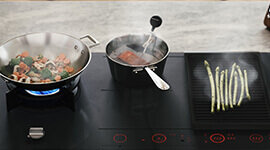 Enjoy the best of both worlds with ASKO’s gas and induction combination hob. Seamlessly transition between rapid, precise induction cooking and the versatility of gas burners, empowering you to create a variety of dishes with ease and confidence.