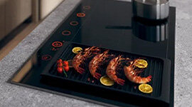 When using extra-large pots and pans, the Auto Bridge function in designated zones expands the induction cooking area and gives total coverage for bigger dishes, grill pans and teppanyaki.