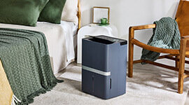 Despite its powerful capacity, this dehumidifier runs quietly and features sturdy wheels and carry handles, making it simple to move room to room as needed.