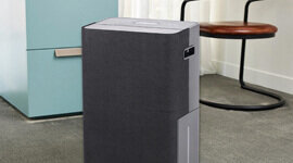 Combines the performance of a 25L dehumidifier with a premium charcoal fabric cover, a sophisticated look for contemporary interiors.