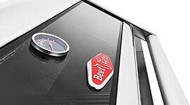 Keep an eye on what’s cooking without lifting the lid. Maintain heat using the built-in temperature gauge or peer through the full-width glass viewing window.