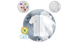 SteamCure’s Hygiene+ cycle heats water to 60°C, effectively reducing common allergens by 99.9% (Allergy UK approved) and eliminating 99.9% of viruses and bacteria (Airmid certified).