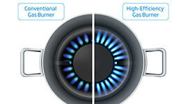 Helping you save money on your energy bills, the special design of our high efficiency gas burners helps them distribute more heat quickly and evenly across the bottom of your pan. This makes them up to 25% more efficient than standard burners.