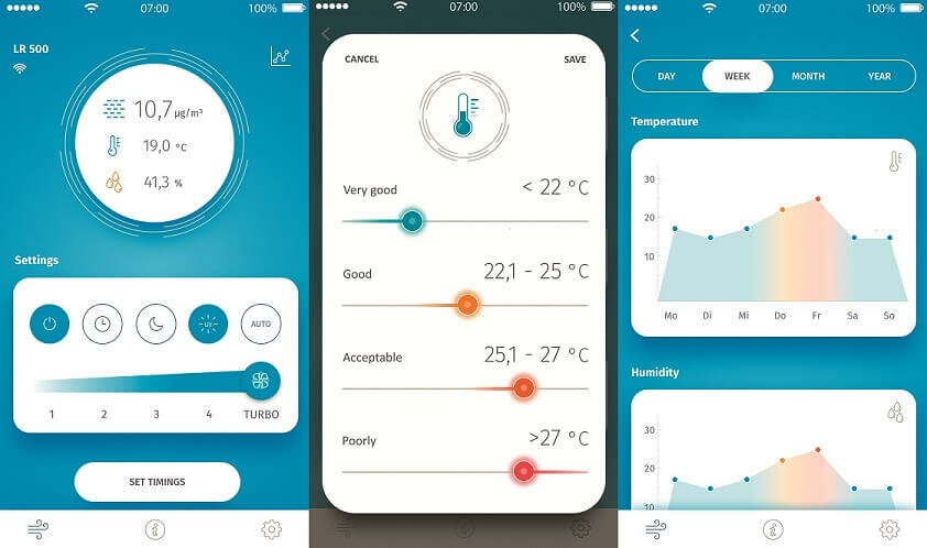 This app connects with the air purifier and allows you to control the unit from anywhere, whether it’s from the couch or the beach. Manage your air quality settings and air purification demands so that your home or office is always pure.