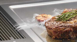 The Tepan stainless steel grill provides exceptional power with two spacious grilling zones and precise temperature control. You can set the exact temperature you need, down to the last degree, and it will be accurately maintained. It heats up quickly, reaching 250°C in under 5 minutes, saving both time and energy.