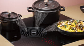 Maximise your cooking potential with the BORA S Pure. Featuring four cooking zones of varying sizes, it accommodates pots and pans of all dimensions. Specially developed induction coils ensure optimal use of the entire cooktop surface, allowing you to cook with up to four pots and pans simultaneously.