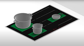 Activating MoveMode divides the cooking zone into three different areas with pre-set power levels. Simply move the pot from the front area of the zone, where the food is boiled, to the middle, where the food is cooked, and to the back area, where it will simmer.