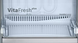 Internal sensors in this Bosch Fridge constantly monitor the temperature inside and outside the fridge and freezer compartments. The cooling circuit and compressor continually adjust to ensure a stable interior temperature and provide prolonged freshness.