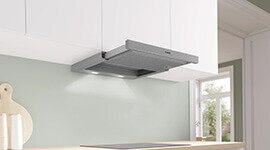 This space-saving rangehood installs neatly under cabinetry and extends only when needed, maintaining a streamlined look in any modern kitchen.