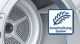 With a flow of mild, warm air coming from all sides of the drum, combined with the soft carriers, your clothing is dried gently and effectively without creasing.