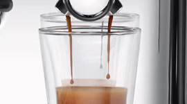 Designed for perfect extraction, this coffee machine produces creamy, caramel-coloured espresso. This is achieved with low pressure pre-infusion followed by a high pressure 9-bar extraction process.