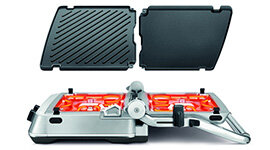 Open the grill flat for an ideal square grilling and griddle surface. Makes grilling steaks, burgers or seafood a cinch, while cooking eggs and pancakes to perfection.
