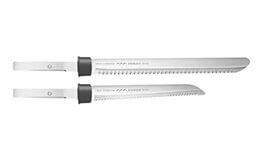 2 blade sizes to choose from; 18cm carving blade set for meats and bread loaves and the 13cm slicing blade set for smaller items such as fruits and vegetables.