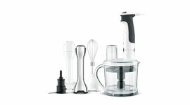 | Accessories included | 1.6L food processing bowl, variable mashing leg, S-blade, stainless steel blending leg, reversible shredding disk, variable slicing disc, removable gear box and storage base |