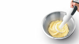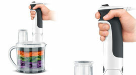| Features | Bell-shaped blending base with internal ribbing for more efficient blending Stainless steel blending shaft Non-scratch base to protect your pots and pans 15 speed settings 18 precise thickness settings (0.5-6.0mm) Ergonomic trigger grip for stability and control Convenient compact storage |