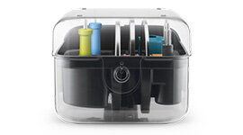 The chef's armoury storage container conveniently houses all the attachments and cleaning utensils, keeping everything organised and within reach when the food processor is not in use.