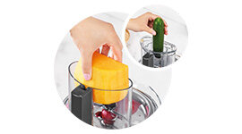 The two-in-one 120mm feed chute is designed to accommodate various shapes and sizes - allowing for easy, efficient, and fast preparation of ingredients, saving you valuable time in the kitchen.