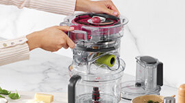The two-in-one 120mm wide feed chute has been designed to accommodate different shapes and sizes - ensuring easy and fast preparation for any of your culinary endeavours.