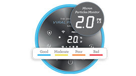 Dual display with real time updates via PM2.5 Micron Monitor and Live Purity Visual Indicator, adjusting performance according to the quality of the air it detects to ensure optimal purification efficiency.