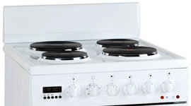 Mounted with a small splashback, this cooker features front-controls positioned safely and well away from the reach of inquisitive little fingers. Whether simmering, frying or boiling, 4 variably-sized solid element cooking zones offer plenty of cooking flexibility.