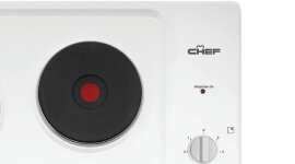 | Features | ● Chef 90cm Electric Cooktop CHS942WB. ● Corrosion-resistant cooking: Made to be corrosion resistant, our solid cooktop hotplates deliver desired heat to your cooking whilst minimizing wear and tea. ● Easy to maintain: Easy clean formed hob in a stainless steel finish makes this hob easy to maintain. ● Side controls: Stepped controls on the side of the cooktop make it easy to determine the heat needed for great cooking results. ● Red Dot: The hotplates include a red dot in the centre to indicate the hotplate temperature, once the hotplate is heated the red dot turns to black. Cooking Zones: Left Front: 1500watt. Left Rear: 2000watt. Right Rear 1500watt. Right Front: 1500watt. |