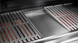 The patented Grease Management System™ reduces flareups by channelling grease and oils away from the burner flames during grilling. This leads to food being more evenly cooked.