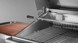 A dedicated infrared rotisserie burner provides controlled searing heat. The heavy duty rotisserie motor with stainless steel hexagonal rod and adjustable forks can accommodate a 25kg load.