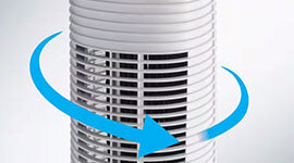 | Features | Oscillation: 360° Wide Horizontal Oscillation for the upper wind outlet. Dual Oscillation: Upper & Lower wind outlets can be set to different directions, covering more space at once. Easy to Use: Touch Control LED display with light dimming function or use the remote control included. Sleep Mode: Enjoy night comfort, keeping noise to a minimum. Timer Settings: 4 Auto-off timer settings; 1-2-4-8 hours. 3 Fan Speeds & 3 wind Modes: Natural, Eco Mode, Sleep mode. Movement: Carry handle located at the top for ease of movement. |