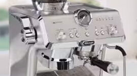| Accessories included | Portafilter, single cup filter basket, double cup filter basket, single cup dual-wall filter basket, double cup dual-wall filter basket, tamper, 350mL stainless steel milk jug, cleaning brush, steam wand cleaning needle, 100mL Delonghi EcoDecalk descaling solution sample, Softballs sample, cleaning tabs sample and water testing strips. |