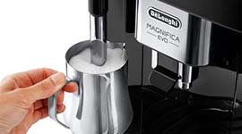 | Features | ● Delonghi Magnifica Evo Fully Automatic Coffee Machine ECAM29083TB. ● 250g Bean Hopper and separate pre-ground coffee dispenser. ● Automatically dosing and tamping to guarantee optimal infusion. ● Automatic Milk texturing with the new 220ml LatteCrema system. ● Three in-built sensors to detect the carafe and milk level. ● Simple to clean and maintain – the machine will automatically rinse on start-up and shut down, and alerts when descaling is required. ● Auto - Off setting customisable from 15mins to 3hours plus energy saver mode. |