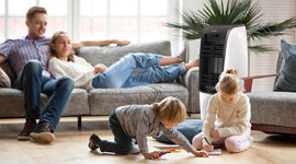 This cooler fan also works as a humidifier, providing you with naturally humidified air to alleviate dry air symptoms associated with other cooling methods like itchy eyes, throat, or skin.