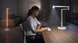 The multi-directional light pivots at the stem, arm, and head to enable 360-degree maneuverability. From shadow reduction and full task illumination to optimise focused work to reflecting light off walls or ceilings to create different lighting moods, the Dyson Solarcycle light offers unparalleled precision and flexibility.