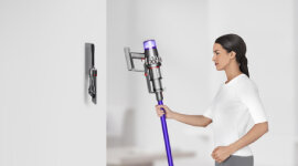 Your Dyson vacuum effortlessly drops into the wall-mounted charging dock, staying organized and always ready for the next clean. The intelligent battery conserves energy by detecting when it's fully charged and automatically reducing power consumption to a minimal trickle.