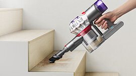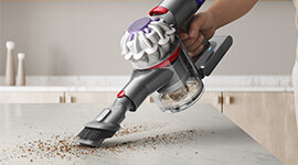 The Dyson V8 Handheld Vacuum is designed to clean across hard surfaces, fabric, and upholstery. Whether you're removing debris from tight vehicle interiors or refreshing cushions and mattresses, it adapts to your space and needs.