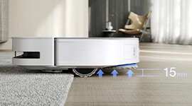 With 15mm Auto-Lift mopping, the Deebot X5 Pro Omni intelligently adjusts when encountering carpets, automatically lifting the mopping pad to prevent wetting while increasing suction power.