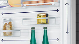 Customise your fridge just the way you want it. FlexStor makes it simple to arrange the fridge to your needs with adjustable door bins and shelves. Different sized compartments effortlessly store your items.