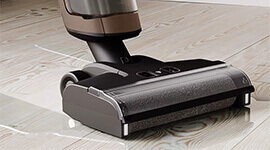 | Features | Self-Clean Nozzel: The feature is easily activated via a push of a button on the hand unit while being placed on the charging stand. Fresh Clean Floors: with added detergent the added fragrance leaves the floor smelling fresher and cleaner. Dry floors in Mins: your floors will be thoroughly clean, dry, and streak free. Efficient Mopping: clean up sticky messes quickly and efficiently* with the wet and dry vacuum. Antibacterial Water Tank: Antibacterial water tank eliminates up to 99.9% of the tested bacteria* for optimal cleanliness and hygiene. Powerful Performance: The vacuum delivers powerful suction performance to pick up to 99% of dry debris* for cleaner floors. No Excess Water Left Behind: To ensure no trace of excess water is left behind, suction power continues for an additional 2.5 seconds, even when the wet and dry vacuum is switched off. |
