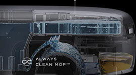 Revolutionary mop tech with spinning, self-cleaning pads and dual water tanks keeps floors spotless by simulating the pressure and motion of human scrubbing.