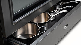 Keep your pots and pans close by with this oven’s large storage drawer. Store your items easily, and while maximising the use of space, using the built-in storage drawers.