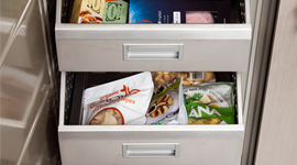 This clever electronic system manages and monitors the entire fridge operation process. The digital display shows the fresh food compartment and drawer temperatures, and the interactive menu allows you to easily select the many available functions and customise the functions of the fridge according to your needs.