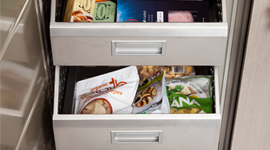 The OptiView lighting system uses bright, energy-efficient LEDs to light the compartments from above, with added LED spots to illuminate distinct areas of the fridge including the fresh food compartment and TriMode drawer.