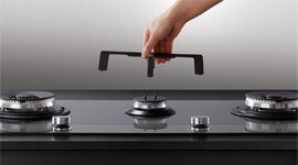 | Features | Design: Ceramic Glass Finish Ignition: Automatic Ignition. Control Panel: Ergonomic Front Control Knobs. Wok Burner: Dual Wok Burner with Inner & Outer Control Burner Type: Matte Black Finish. Cooktop Trivets: 3 x Cast iron Trivets. Cleaning: Removable cast iron trivets and ceramic glass that can be wiped down for easy cleaning. Flame Failure: Yes, A flame-failure safety device; if the flame goes out, the gas turns off. Cooking Zones: |