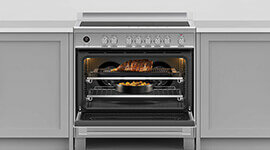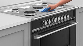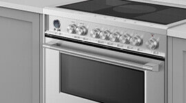 Every detail has been carefully crafted. The solid, perfectly balanced soft-close door, durable cooktop trivets and glowing halo dials all add up to an exceptional, premium range.