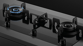 | Features | Installation Type: This model can be installed Flush or Proud into a benchtop. Please refer to the installation guide. Finish: A timeless, minimal look to fit any kitchen style, with black ceramic glass cooking zones and a black trim. Controls: Ergonomic control dials operating the three Gas Burners. Burners: Three burners including two dual wok burners. Ignition: Electronic gas Ignition, a 10amp Powerpoint is required to light each burner. Safety: A flame-failure safety device; if the flame goes out, the gas turns off. Easy Cleaning: Removable cast iron trivets and ceramic glass that can be wiped down for easy cleaning. Cooking Zones: |