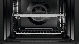 The pyrolytic function uses very high heat to turn food residue inside the oven into ash, which can then be wiped away. To make it even easier, the side racks are enamel-coated so they don’t need to be removed for this function.
